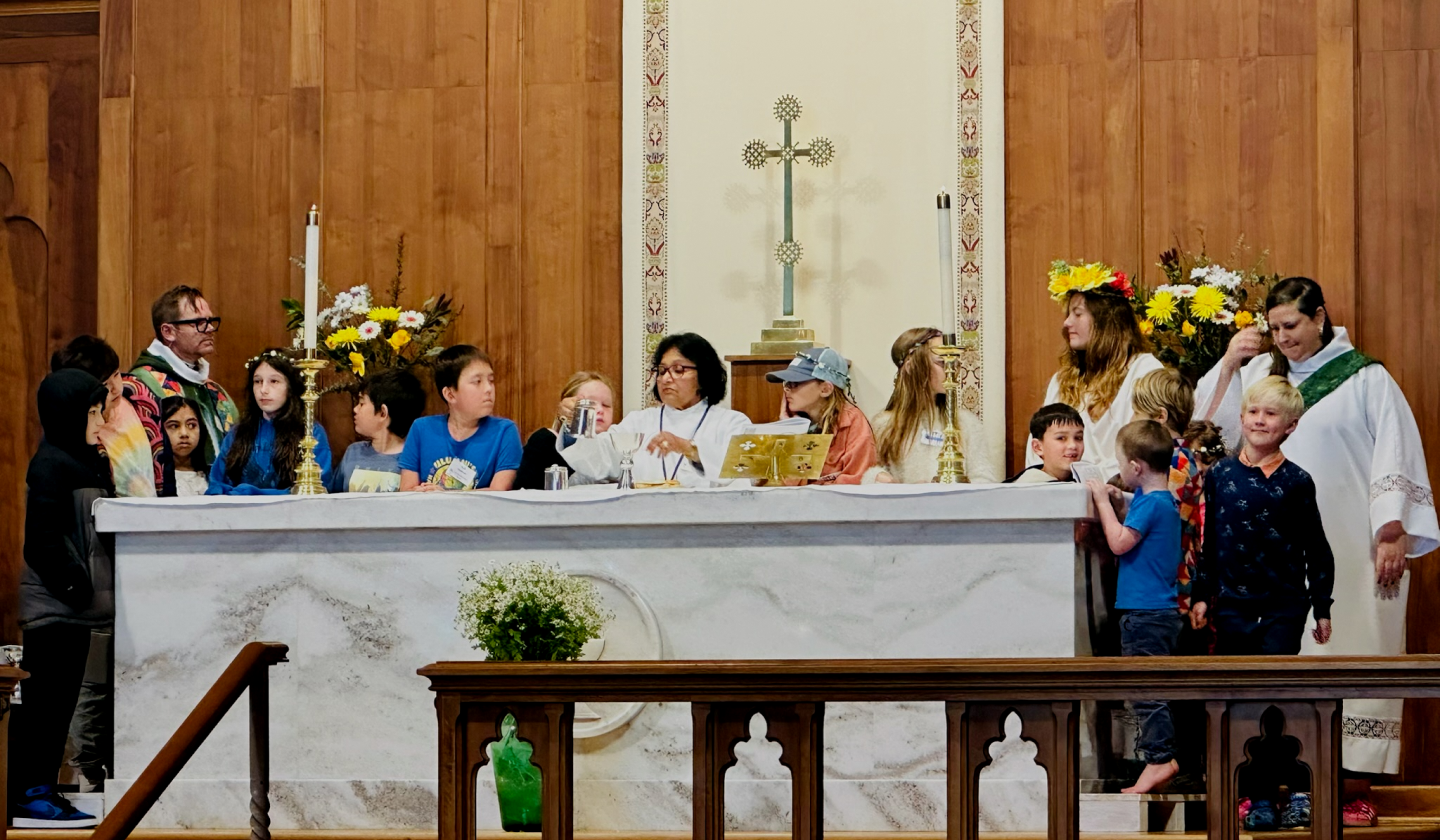 The Altar Guild prepares the altar, arranges flowers, and cares for the sanctuary. Some work happens on Sundays, with additional preparation during the week.