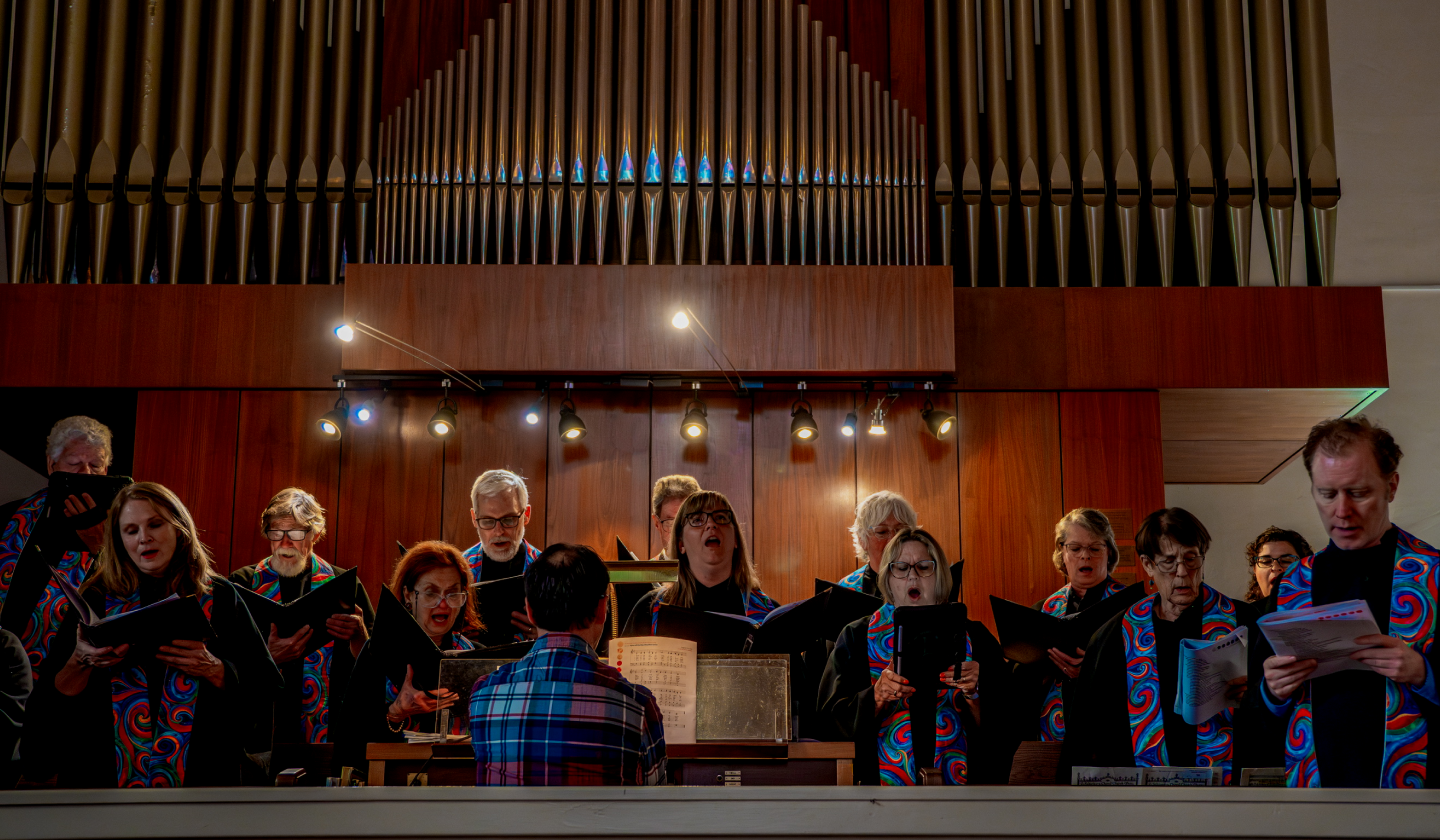 The Adult Choir leads congregational singing and offers choral anthems during the school year. Open to all. Part of the Music Ministry. Rehearsals are Thursdays from 7:30 to 9 pm