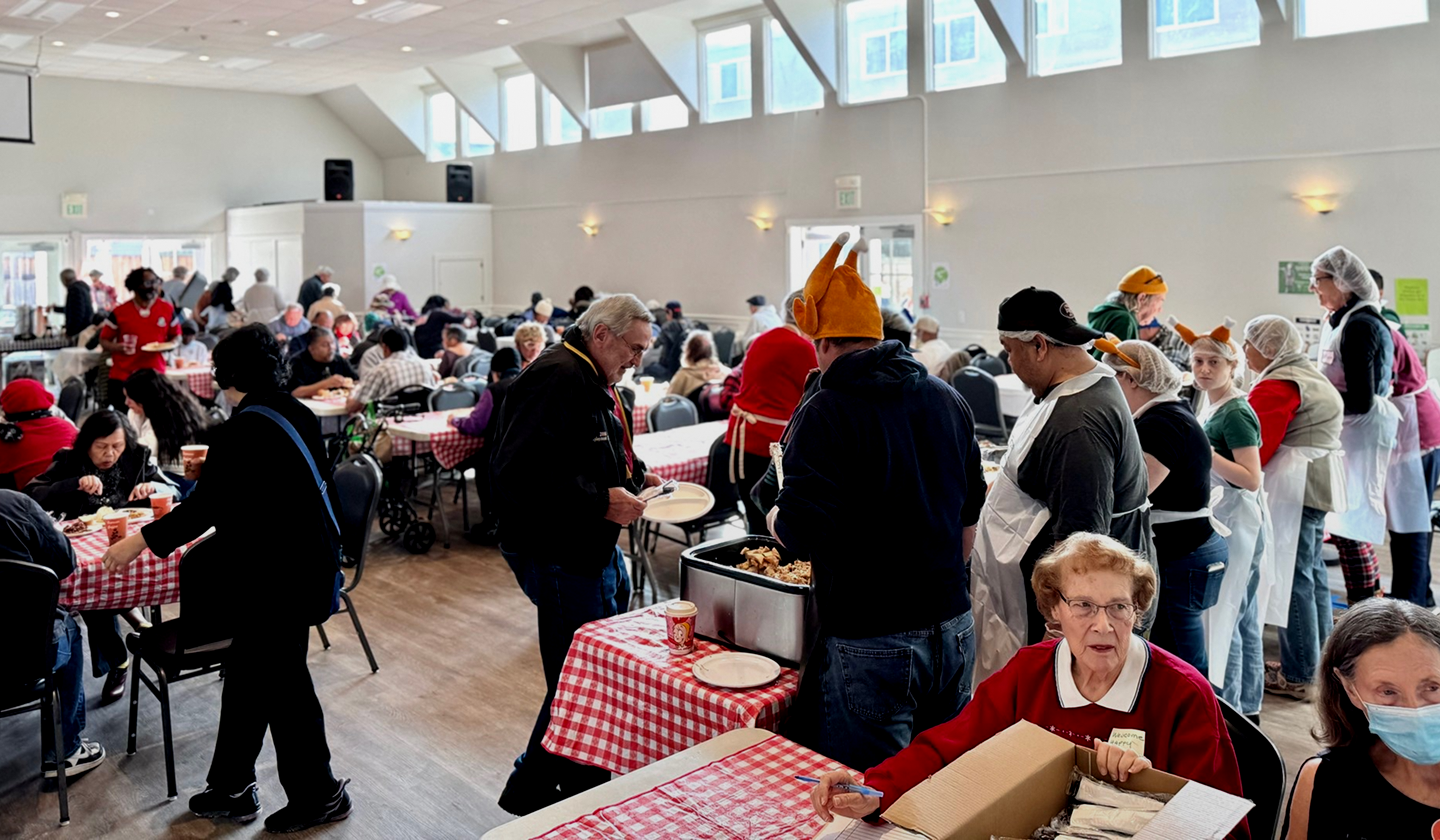 Each year, volunteers prepare and serve over 700 Thanksgiving meals for dine in and delivery. Roles include cooking, carving, serving, hosting, and cleanup. Family friendly and deeply communal.